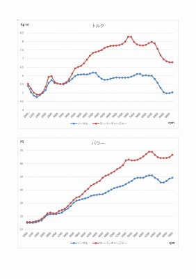 最終的なスペックは、最大出力69ps(純正50ps)、最大トルク8.3kg・m(純正6.2kg・m)となり、純正比約140%の出力を絞り出します。