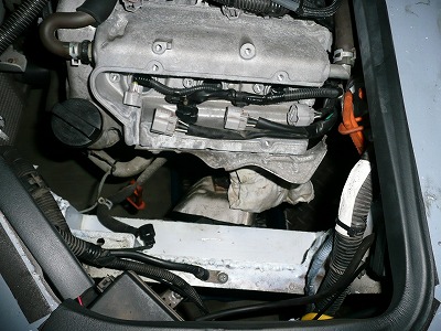 通常のキャリイ(DA63T)とはエンジン周りの様子が全く異なりますが、作業の様子を簡単にご紹介しましょう。