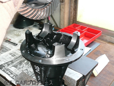 LSD装着の様子は何度もご紹介していますので、今回はバックラッシュ調整の部分を中心にお話ししたいと思います。