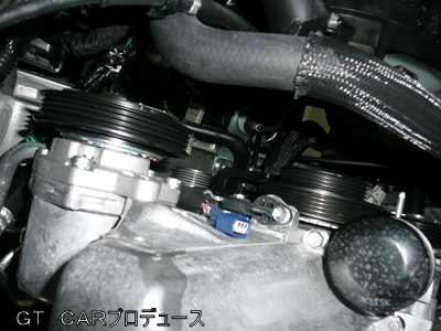 そこにキットに付属のブラケットとロングVベルトを使用して、スーパーチャージャー本体を装着します。