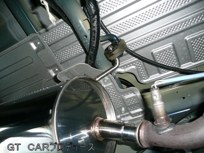 装着が完了したマフラーを下側から見るとこの様な感じになります。