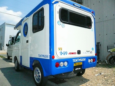 当社には軽トラックベースの軽キャンピングカーがよく訪れるのですが、本日は関東・中部地区では希少な『テントむし』のお客様がいらっしゃいました。