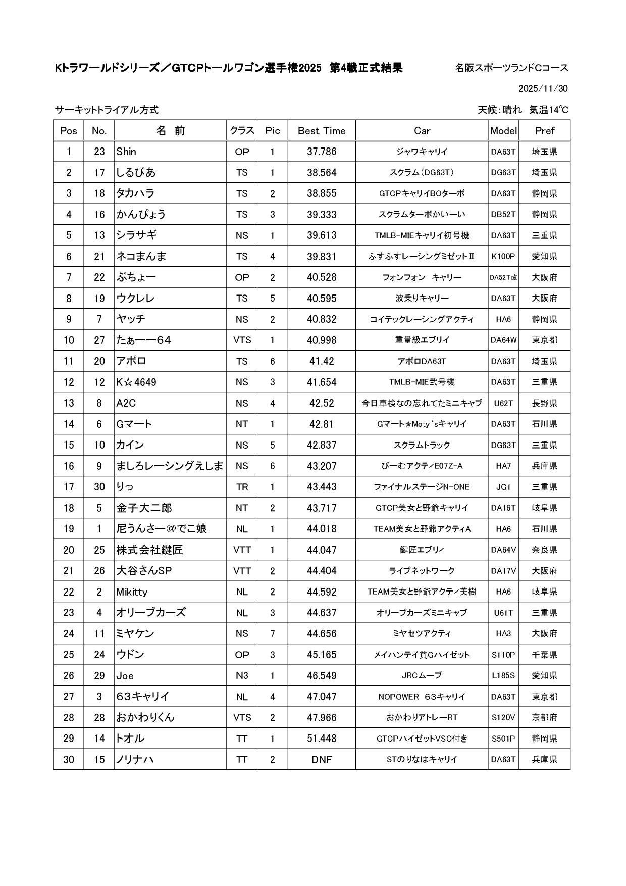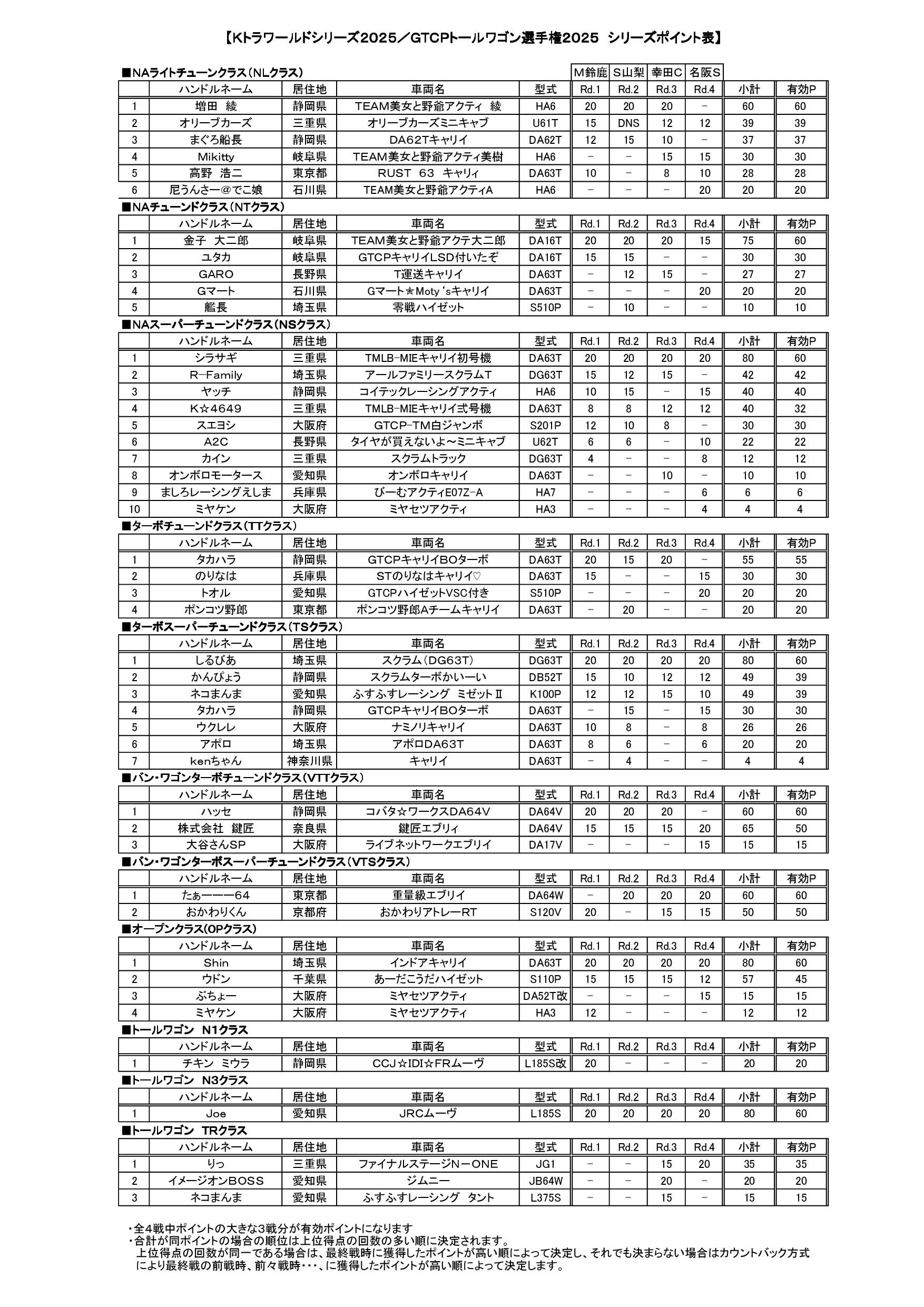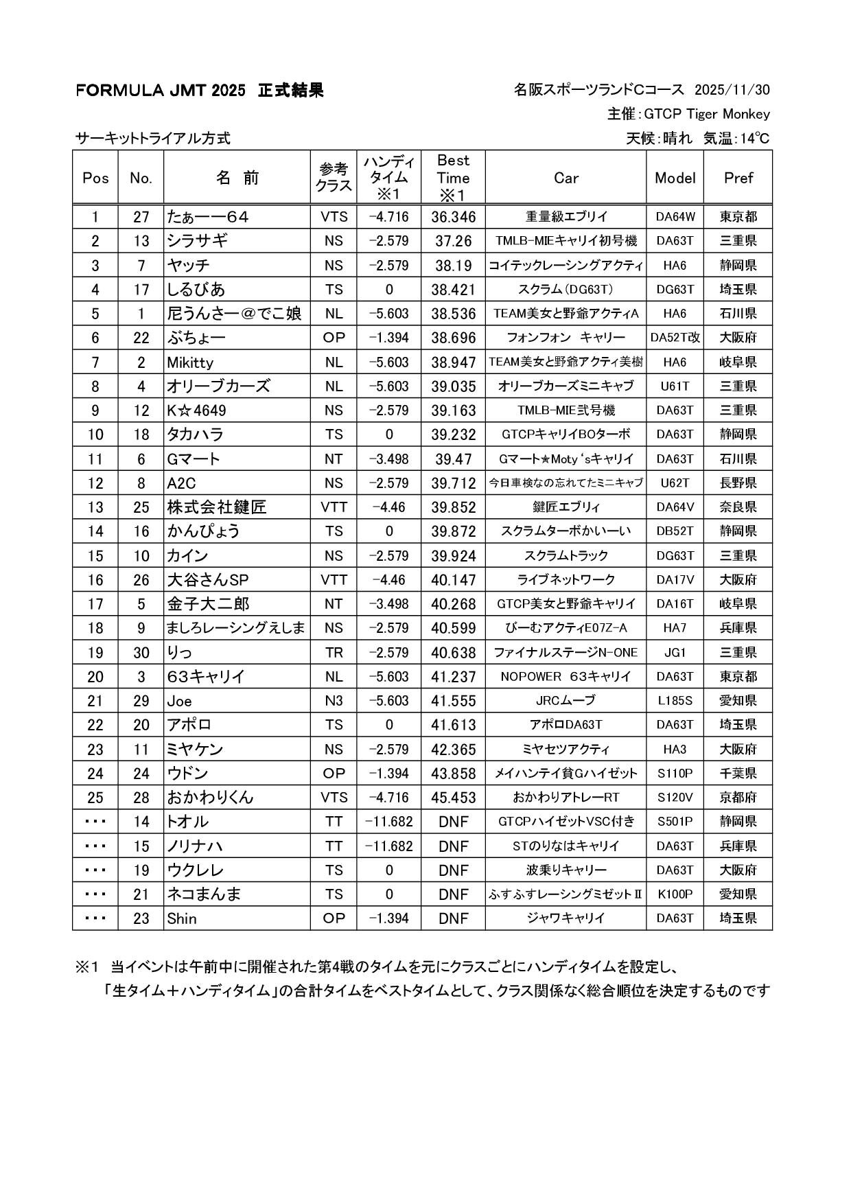 2025.12.012025年第4戦 & FORMULA JMT リザルト・シリーズポイント