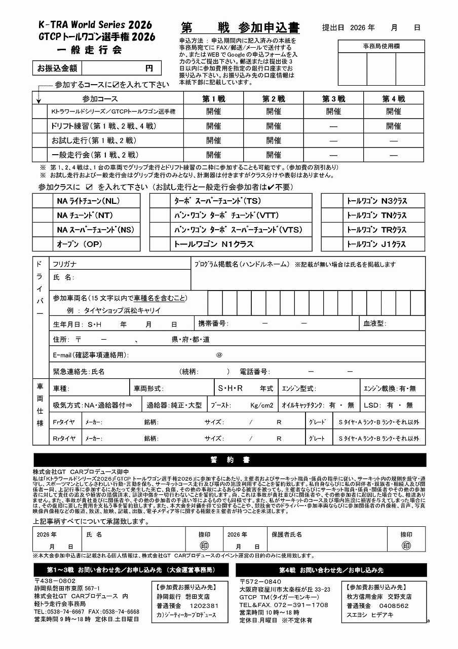 『Kトラワールドシリーズ2026/GTCPトールワゴン選手権2026 大会規則』